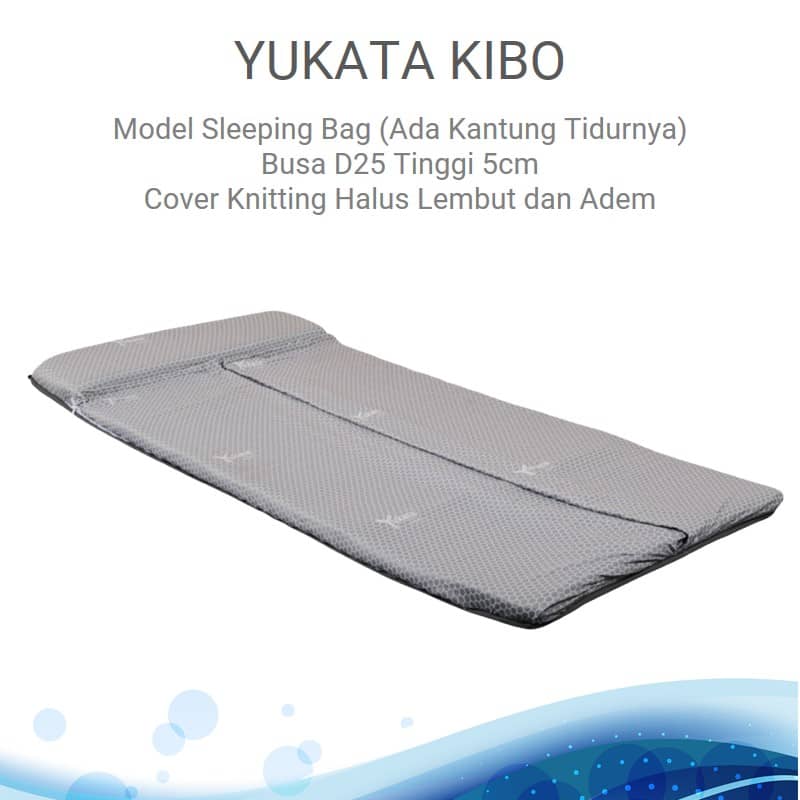 Yukata Kibo Sleeping Bag adalah salah satu produk inovatif dari Yukata Indonesia berupa kasur gulung. Kasur ini disebut sleeping bag karena punya selimut yang menyatu di bagian atas kasurnya. Sangat praktis karena penyimpanannya cukup digulung. Kasur ini juga dilengkapi dengan tas handy untuk mempermudah membawanya.